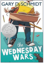 施密特的获奖小说《星期三战争》记录了霍林·胡德胡德在贝克夫人的七年级班级里的旅程。这本书以越南战争为社会背景,讲述了霍林关于友谊、忠诚、失去、家庭以及作为一个人意味着什么的重要教训。